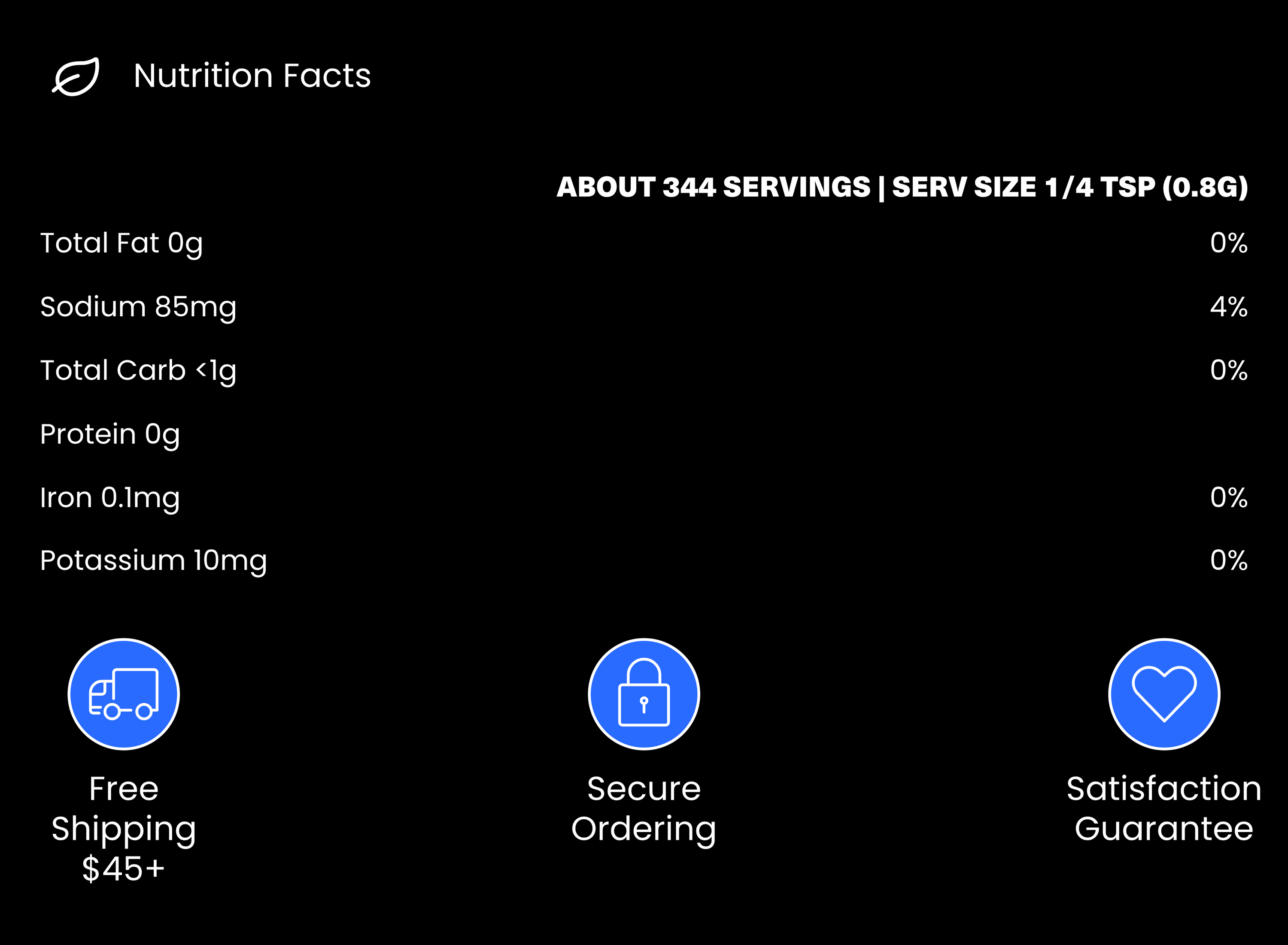 Ingredients: Chili Powder, Cumin, Salt, Garlic, Bell Pepper, Lime Juice Powder
